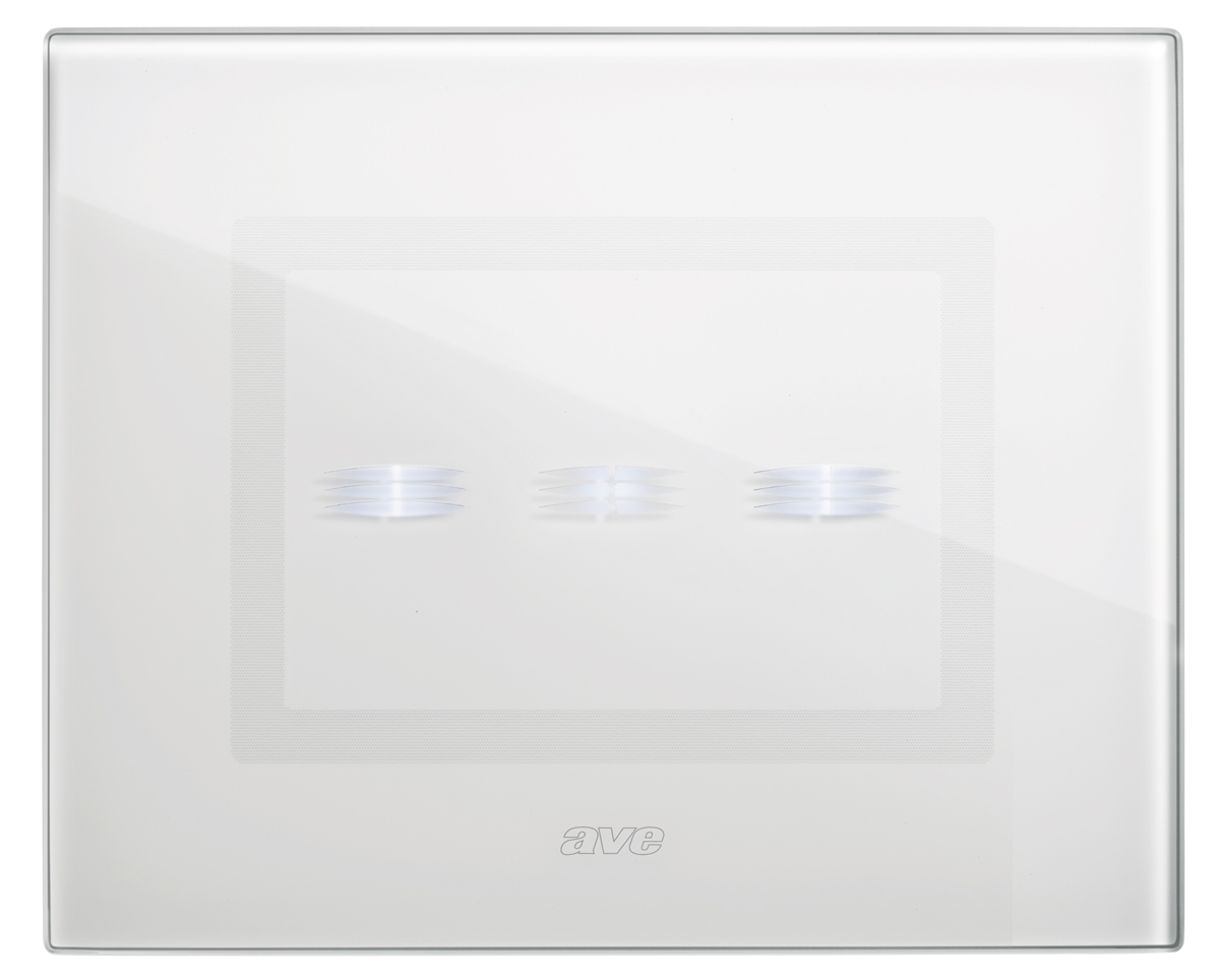 Ave Touch glass front plates for rectangular 3 modules box (fixing centres 83,5 mm) - For 3 hidden controls Clear white colour