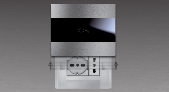 State-of-the-art technology and a unique design will make your home modern and each room will give an impression of elegance and exclusivity. The sliding front plate is especially innovative and creates a powerful visual effect. This sliding front plate covers the plug sockets and guarantees additional security. Also, thanks to the blue LED behind the front plate, the socket symbol discreetly shines in the dark.