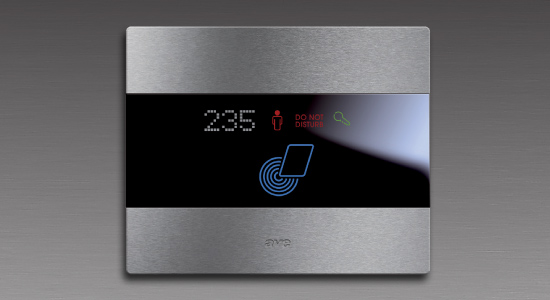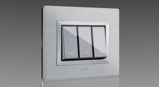 The AVE System 44 is enriched with new revolutionary front plates made of natural, brushed aluminium with Ave Touch technology. The brushed aluminium front plate is crossed with a black horizontal strip in the middle through which the bright blue LED light breaks through, which makes it easier to find the controls in the dark. The gentle, embossed surface of the front plate precisely determines the position of the command and the discrete "click" sound is heard after each switching on or off of the switch.